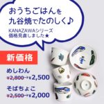 価格見直しました! 当社オリジナルの九谷焼「KANAZAWAシリーズ」。電車や金沢の名産品、グルメなど金沢モチーフを器に散りばめたデザインです。